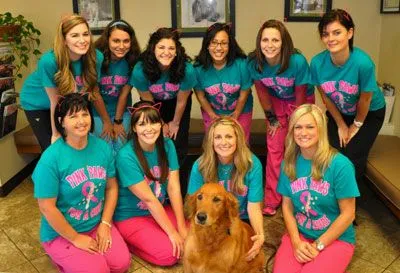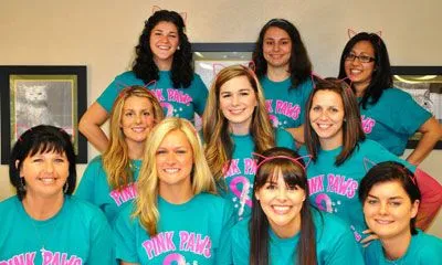 TCVC Staff Wearing Their “Pink Paws” Team Shirts at the Clinic